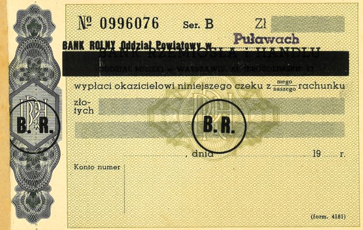 System czekowy działa jeszcze w wielu krajach, także rozwiniętych, chociaż wystawiane czeki nie mają często charakteru powszechnego. Bank Rolny godził działalność komercyjną z wypełnianiem misji wyznaczonej mu przez Państwo.