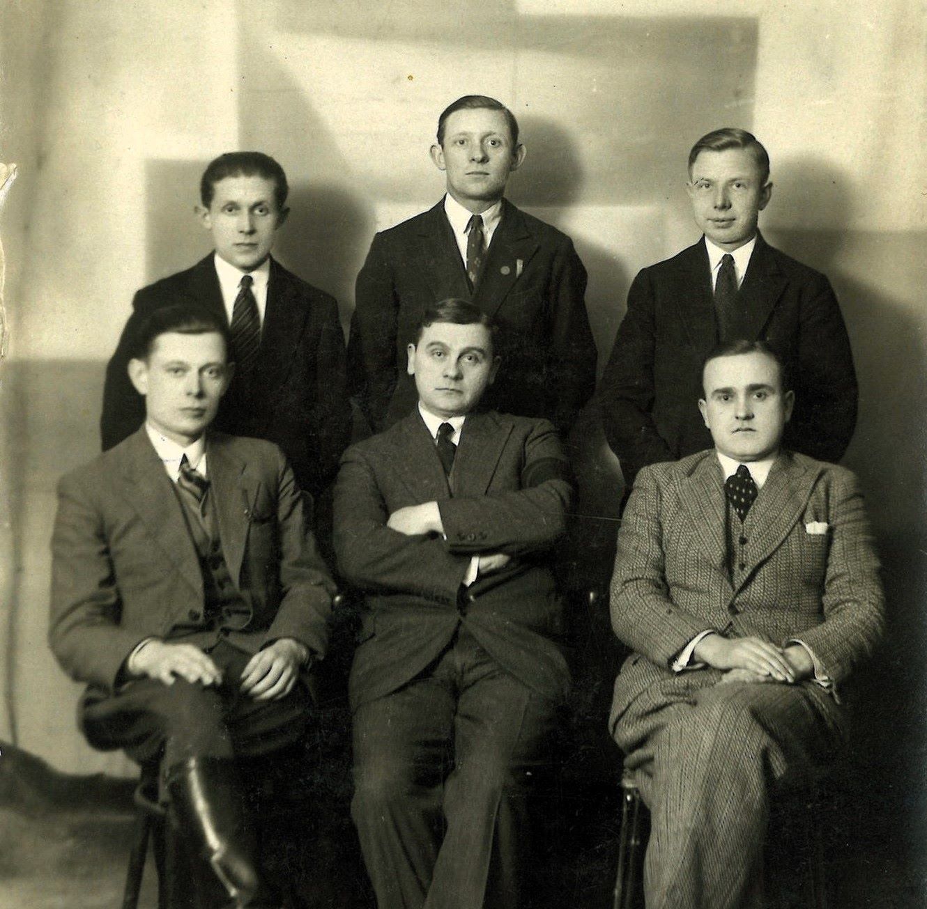 Lustrator „Społem”, niejaki pan Sikorski (brak imienia). Prawdopodobnie ten w jaśniejszym garniturze. Okres okupacji hitlerowskiej.