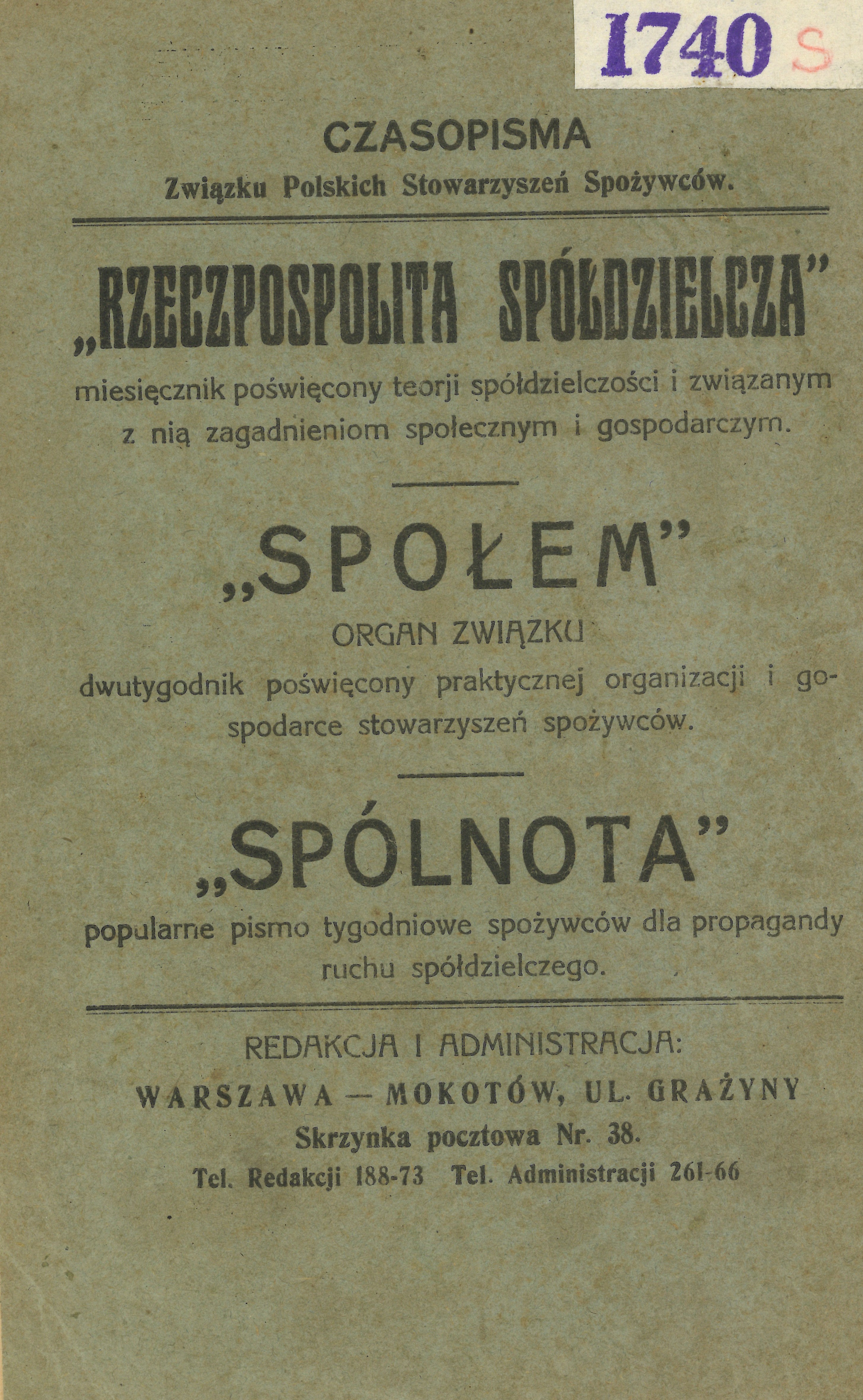 Wydana nakładem Wydawnictwa Wydziału Propagandy Związku Polskich Stowarzyszeń Spożywców (późniejsze „Społem”) w 1921 roku, książka pt. "Domy społeczne" J.W.Kosmowskiej odpowiadała na ówczesne zapotrzebowanie zdobycia konkretnej wiedzy o tym, jak zbudować bądź tylko zorganizować tzw. dom społeczny (spółdzielczy). W mieście miałby on charakter domu robotniczego, a na wsi – domu ludowego, lecz cel stworzenia takiego miejsca w obu przypadkach jest podobny – podnoszenie poziomu wiedzy i edukacji spółdzielców, a także wykreowanie miejsca, gdzie mogliby organizować spotkania „agitacyjne” oraz organizacyjne spółdzielni, oczywiście tych działających na danym terenie. Książka wyposażona została w przykłady (ze zdjęciami) adekwatnych domów w innych krajach Zachodu oraz polskich, zwycięskich prac konkursowych w tym zakresie.