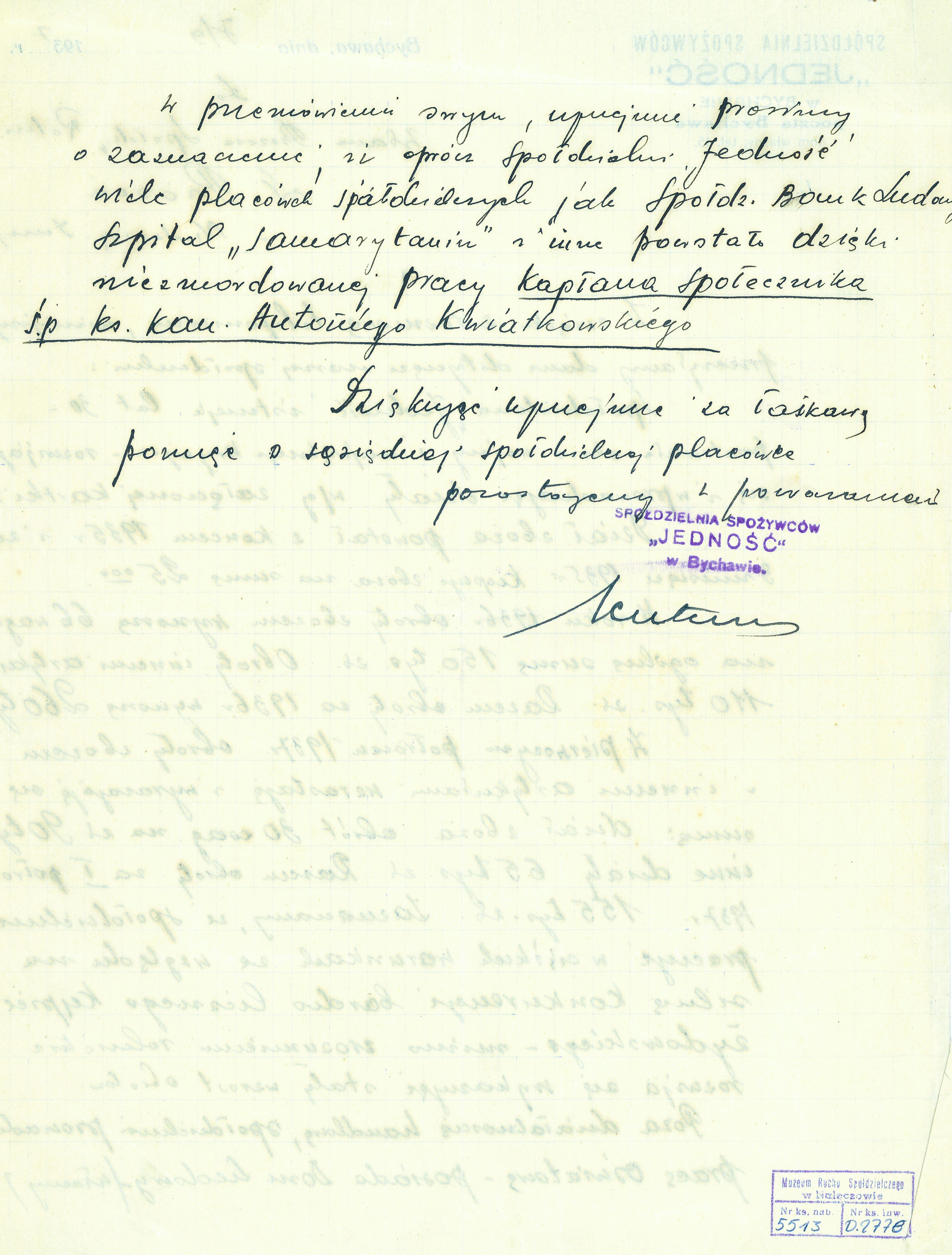 W 1915 r. Ignacy zainicjował zorganizowanie Stowarzyszenia Spożywczego ‘Kmiotek” a w 1918 r. za czynny udział w tzw. manifestacji brzeskiej został aresztowany i był więziony jakiś czas przez Rosjan na Zamku Lubelskim. W styczniu 1923 r. wybrany na wójta Gminy Niedrzwica odnawia i rozbudowuje zakres działań K.R., a w 1936 r. przekształca je w mocną ekonomicznie Spółdzielnię Rolniczo-Handlową Rolnik. Do 1939 r. udaje mu się unowocześnić powstałą za jego sprawą mleczarnię spółdzielczą, pełnił też funkcje, m.in.: szefa OSP, nadzorcy działania Domu Ludowego, prezesa spółdzielni mleczarskiej oraz członka zarządu Spół. Mleczarskich w W-wie, a także członka Rady powstałej w Lublinie Giełdy Mięsnej. Jego zasługi są nieocenione i być może niedoszacowane, zachęcamy do zapoznania się z załączonymi przy tym artykule dokumentami.